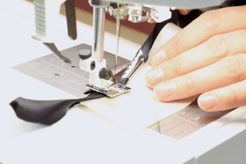 The foot is equipped with a funnel that guides and folds that fabric while keeping it flat; giving you professional
