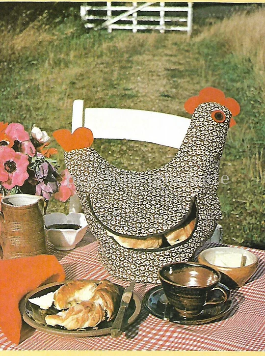 Both wings lift up to grab a warm bun or bread. The quilted plaid body has an elastic bottom that fits snugly over a store-bought oval basket.